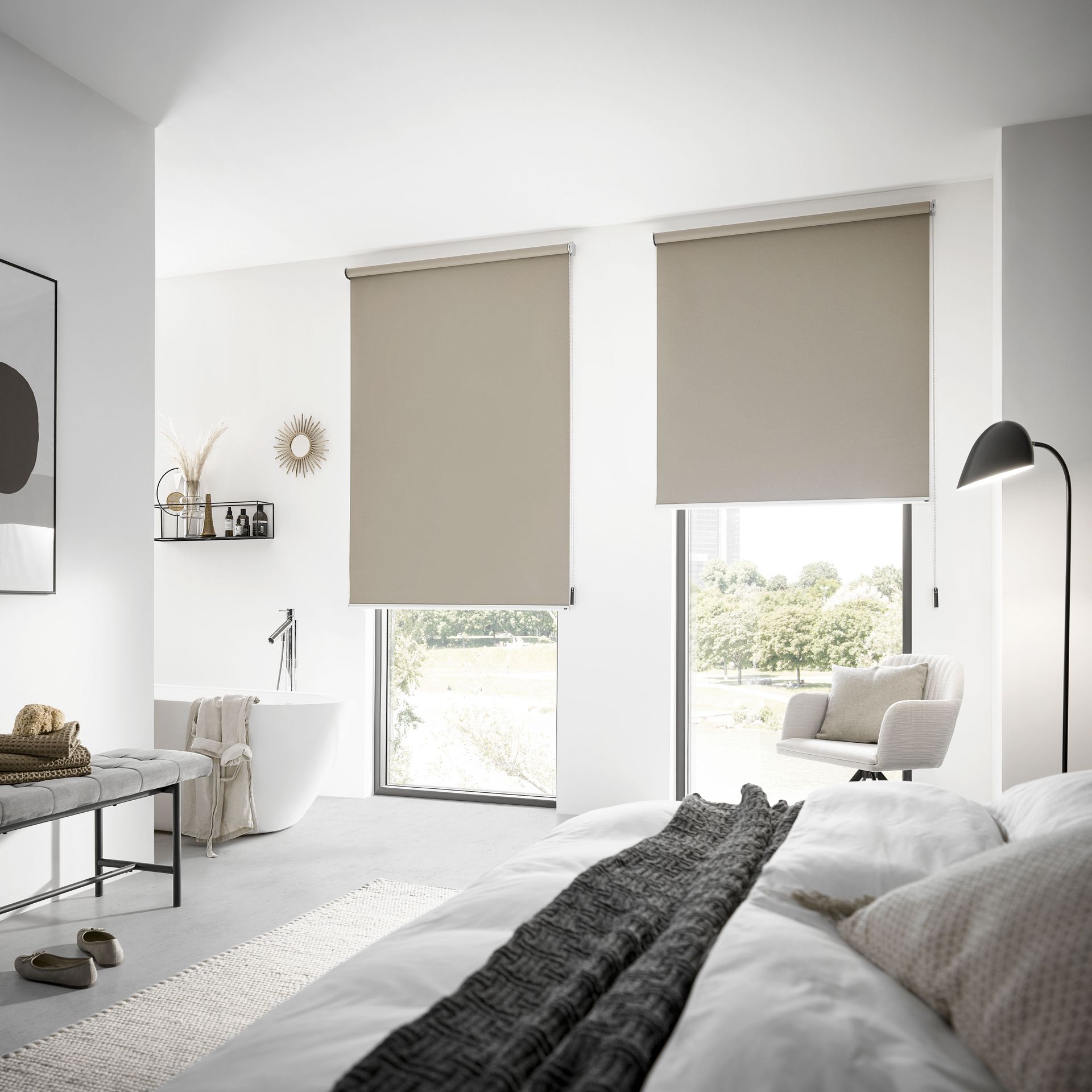 Klare Linien, ein reduziertes Design und eine leichte Bedienung machen das Rollo zum Universalgenie, das sich an jegliche Raumsituationen optimal anpasst. Schließlich ist es als Innenbeschattung sowohl für rechteckige Standardfenster als auch für ganze Glasfronten geeignet.